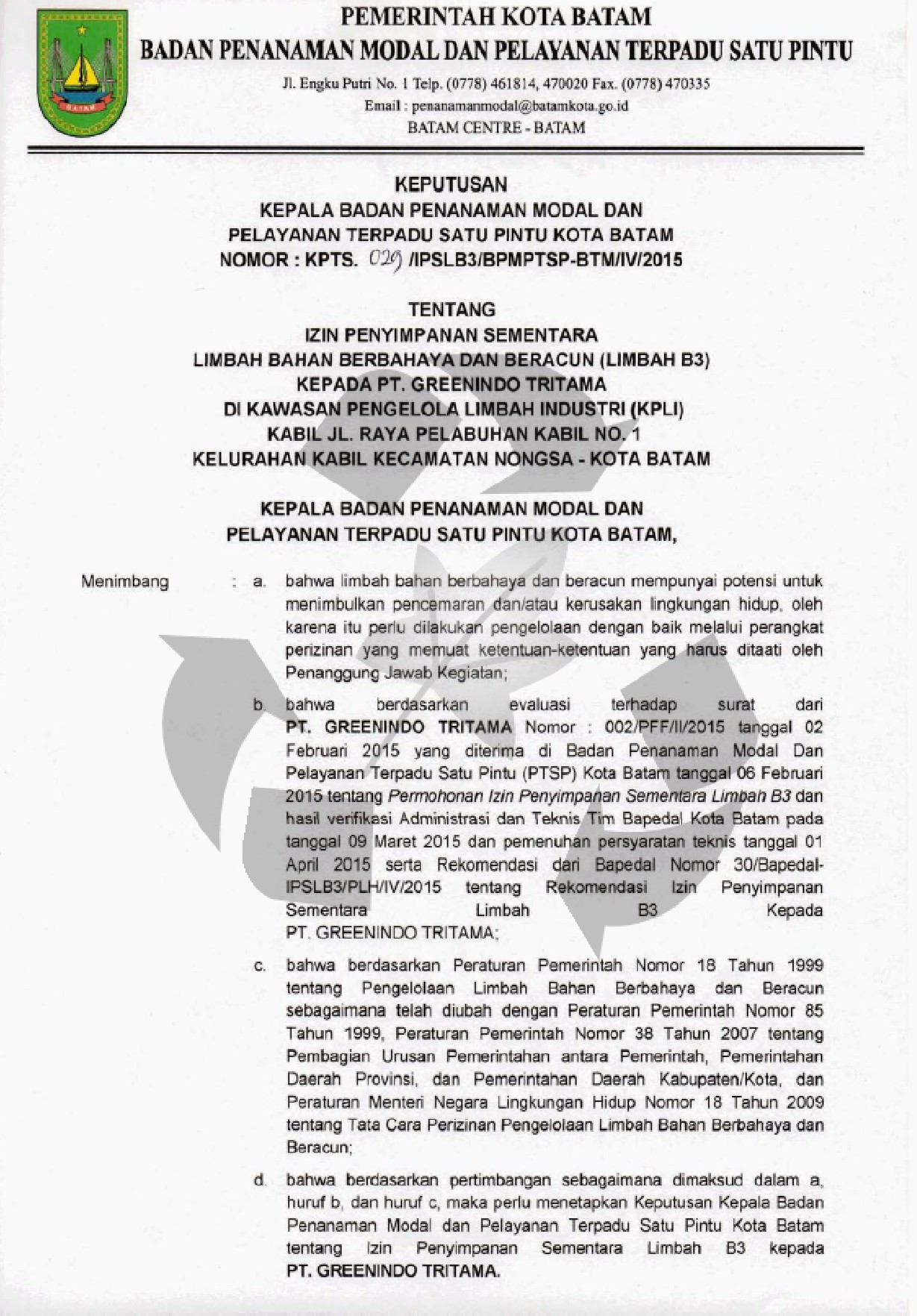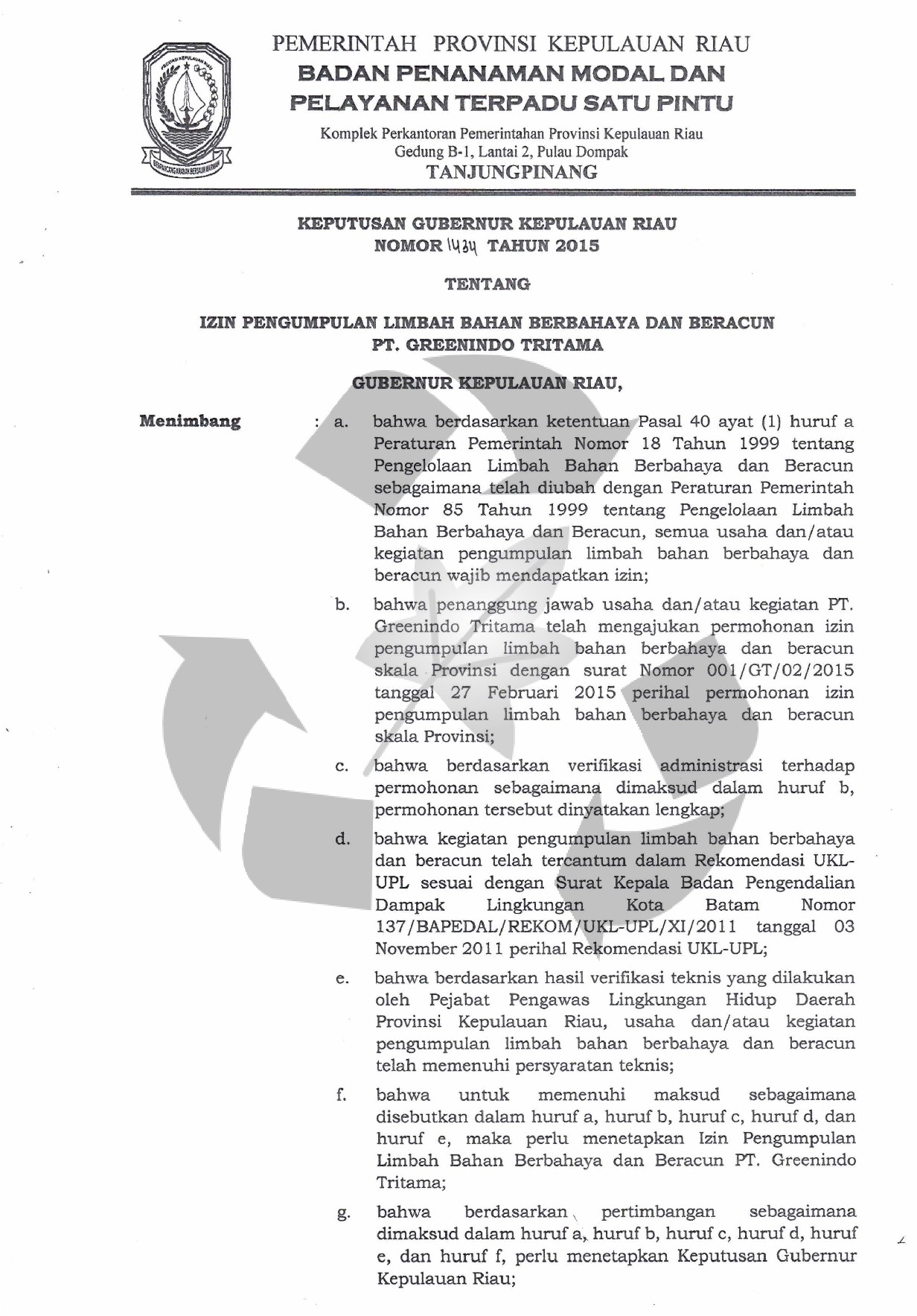 izin pemanfaatan limbah